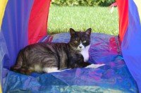 Už jméno napovídá, že nejde o dalšího našeho psa, ale o kocoura. Nikdy jsem si nedovedla představit, že já bych si kočku pořídila. Ale poté, co jsme se přestěhovali do naší vesničky Hvozdná, kde je náš domeček obklopen ze tří stran loukou a zahradu nám neustále provrtávaly myši, kočka bylo to jediné možné řešení. A protože borderky jsou skvělé v tom, že se snesou se vším, sehnali jsme kotě. Flash byl pro něj od začátku jeho velký bratr. Představa mého muže, že bude kočka jenom venku se záhy rozplynula (nejoblíbenější místo ke spánku je postel mého muže, který je samozřejmě moc rád J).